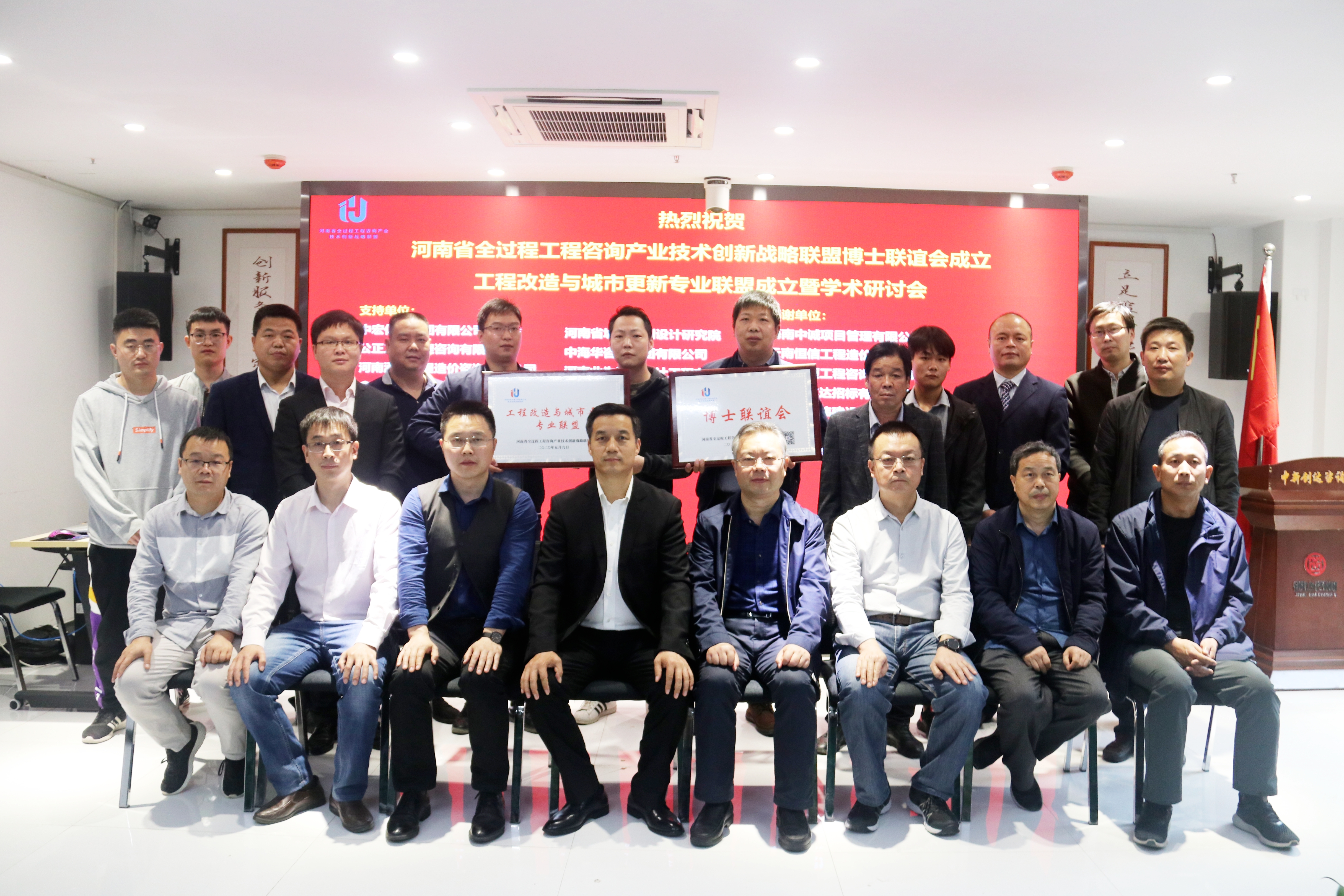 2020年5月9日,由中新創(chuàng)達咨詢有限公司牽頭組織的河南省全過程工程咨詢產(chǎn)業(yè)技術(shù)創(chuàng)新戰(zhàn)略聯(lián)盟博士聯(lián)誼會、工程改造與城市更新專業(yè)聯(lián)盟成立暨學(xué)術(shù)研討會在創(chuàng)達咨詢總部召開,會議采用現(xiàn)場+遠程視頻+直播形式。