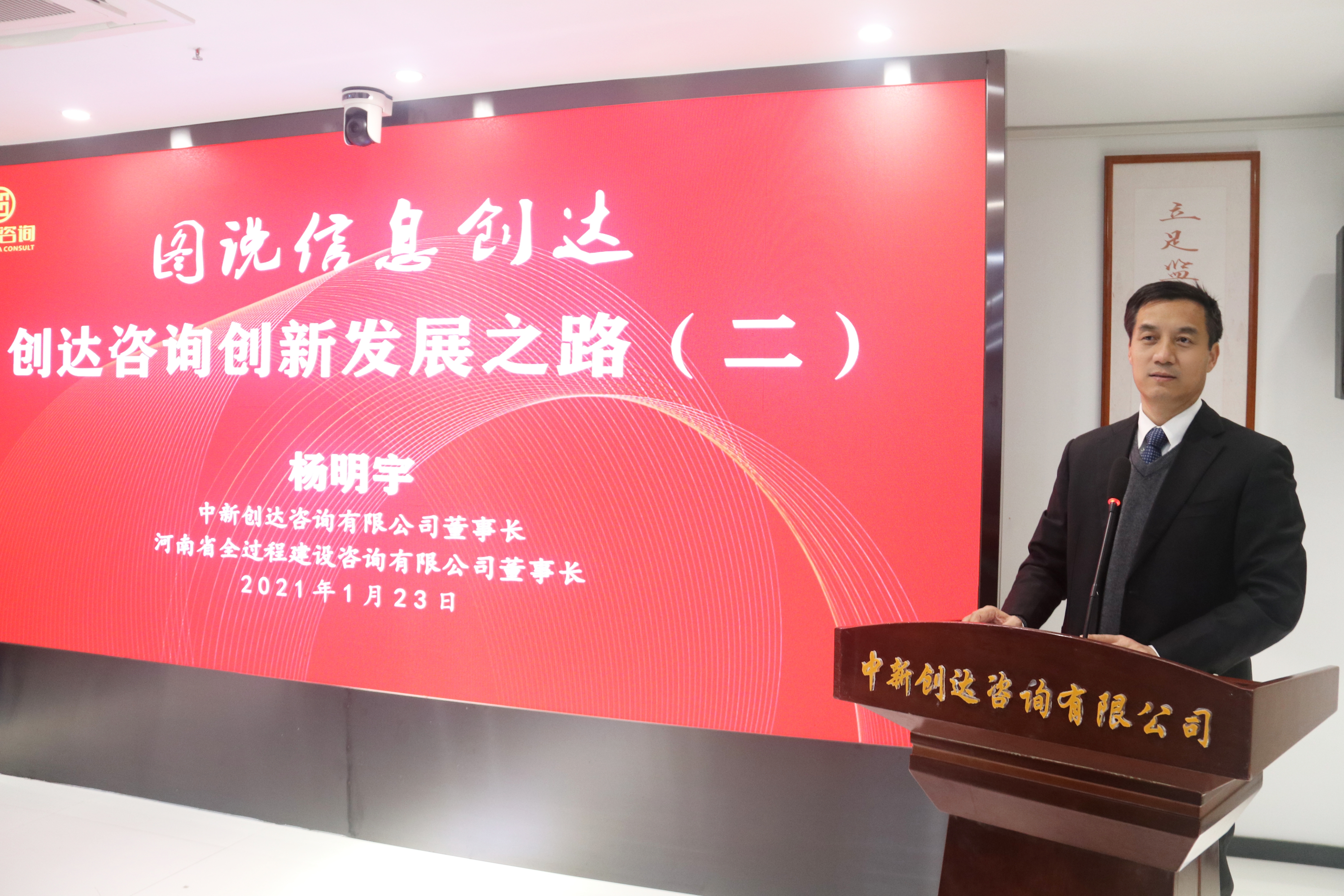 董事長楊明宇以《圖說信息創達 創達咨詢創新發展之路》為題做了分享。從創業生態打造、企業危機管理、企業治理能力提升等方面闡述了2021年如何走好創達咨詢信息化創新之路。他表示,要以“互聯網+創達咨詢”的模式,實施企業“ 個、十、百、千、 萬 ”工程激勵政策,特事特策、政策引領、考核推動,實現“信息創達”建設,推動企業高質量發展。