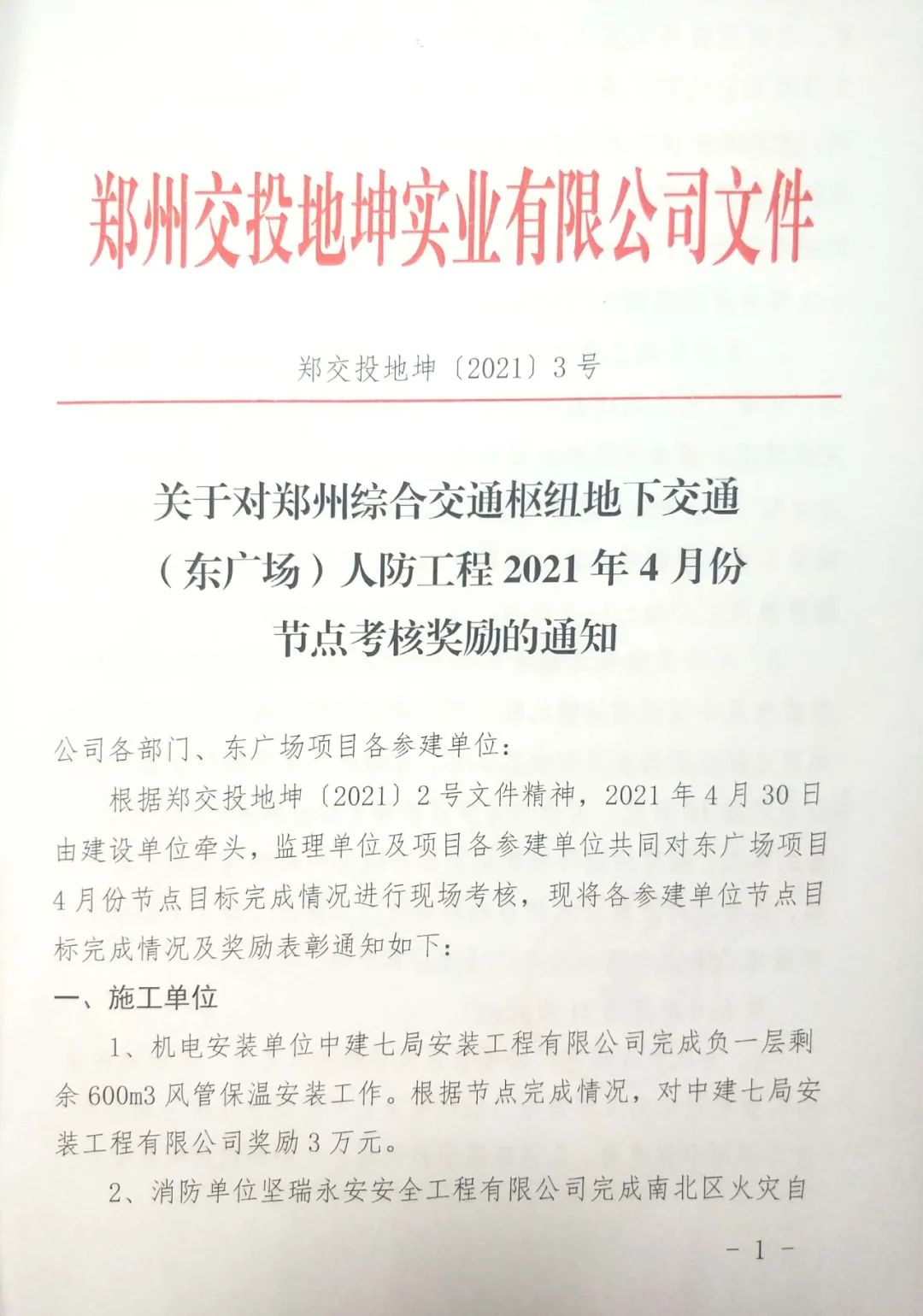 2021年5月28日,創達咨詢受到鄭州交投地坤實業有限公司的通報表揚,并給予3萬元獎勵。我司項目部積極推進各參建單位按照節點目標要求加快項目施工,認真執行相關施工驗收規范標準,及時發現現場存在的問題并督促有效整改,確保了工程質量和施工安全。