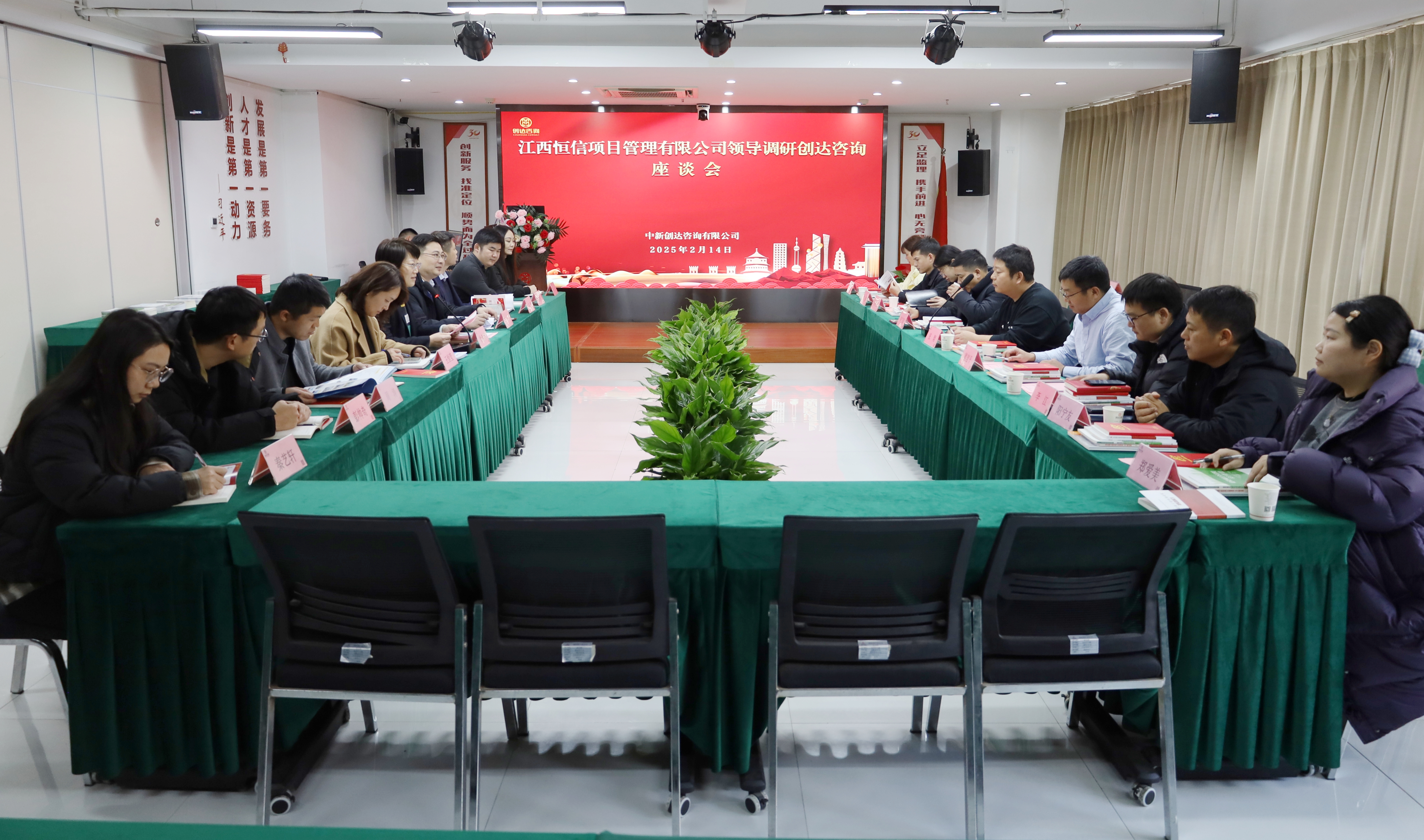 2025年2月14日下午,江西恒信集團(tuán)執(zhí)行董事、江西恒信項(xiàng)目管理有限公司總經(jīng)理張翔帶領(lǐng)管理團(tuán)隊(duì)蒞臨創(chuàng)達(dá)咨詢參訪交流。公司執(zhí)行董事徐希萍、副總裁丁東、副總工王恒瑩、集團(tuán)戰(zhàn)略群總裁王偉等領(lǐng)導(dǎo)出席接待并召開座談會(huì)。雙方就企業(yè)市場(chǎng)開拓、業(yè)務(wù)經(jīng)營、技術(shù)管理提升、行業(yè)發(fā)展痛點(diǎn)、全過程咨詢實(shí)踐等議題展開深入交流。